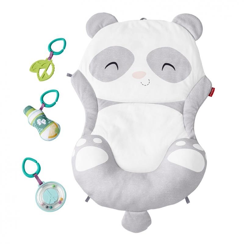 Fisher-Price Hrací dečka panda poskytne vašemu děťátku skvělé místo, kde může pást koníčky a zažít spoustu zábavy doma nebo na cestách. Plyšová a tvarovaná podložka má vestavěný měkký klínek, který pomáhá podepřít vaše maličké během pasení koníčků. Součástí jsou čtyři vzrušující aktivity pro vaše děťátko, které je může zvesela objevovat. Zahrnují chrastítko ve tvaru znaku míru, kousátko ve tvaru lístečku, šustící lahvičku na vodu a veselý zvuk rolniček vycházející z pandina ocásku. Když už musíte jít, snadno dečku zabalíte a vezmete za praktické držátko. Tato hrací dečka ideálně rozvíjí všechny smysly vašeho děťátka včetně hrubé motoriky, která je velmi důležitá pro jeho malé rostoucí svaly.