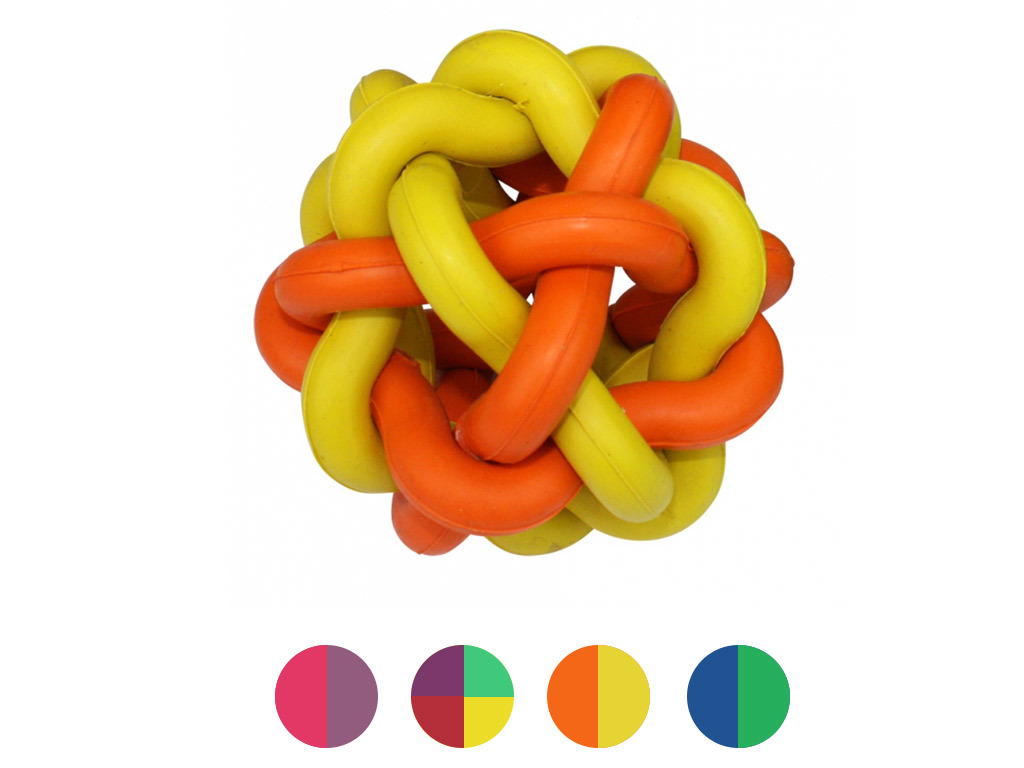 Tato zábavná hračka je vyrobena z vesele zbarvených gumových "trubiček". Je váš pes blázen do aportu? Pak tuto zábavnou hračku vřele doporučujeme. Svým tvarem se také mírně liší od běžného míčku a proto je pro vašeho psa extra atraktivní. Materiál: guma Velikost 10x10x10 cm. Váha 290g. Vhodné pro velké plemena psů. Velmi odolné provedení. Uvedená cena za 1 ks. Dodáváno v různých barvách, požadavek na danou barvu napište do poznámky v objednávky. Pokud bude požadovaná barva skladem bude Vám vyhověno.