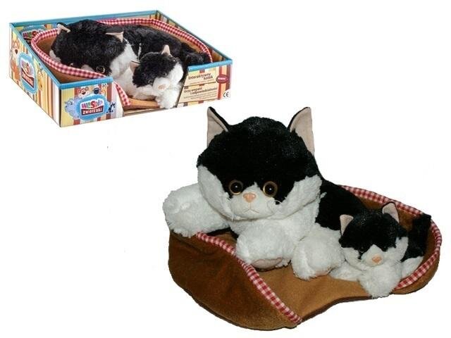 W zestawie: duży kot, który reaguje na dotyk, 3 różne mruczenia kotka, mały kotek