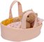 Wspaniały zestaw Moppettes od Manhattan Toy zawiera pluszowego misia w kołysce z miękkiej tkaniny, kocyk i poduszkę. Dzięki kompaktowej konstrukcji gondoli, która doskonale sprawdza się w podróży, można zabrać misia wraz z akcesoriami dosłownie wszędzie.