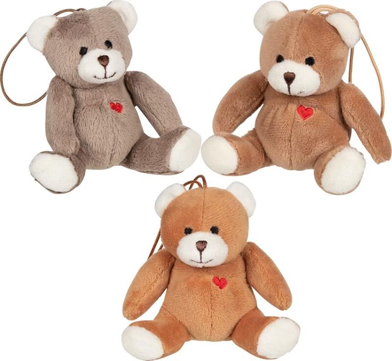Pluszowy Miś brelok mała maskotka Goki z wyszywanym serduszkiem, o wysokości 10 cm, występuje w trzech kolorach: szarym, rudym i jasnobrązowym, zachęca do trzymania go zawsze pod ręką i przytulenia kiedy tylko ma się ochotę!