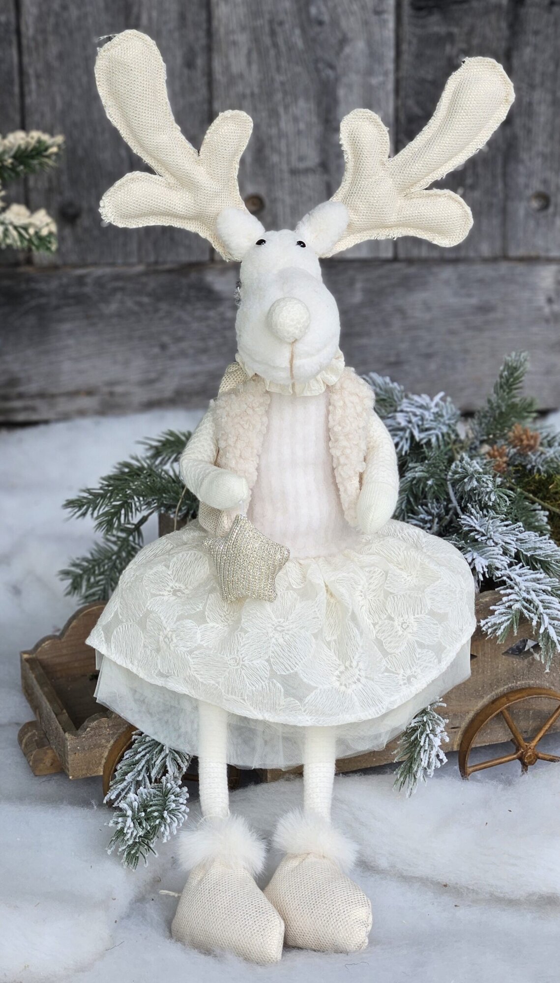 Sedící bílý plyšový sob je součástí kolekce belgické značky La Galleria číst celé