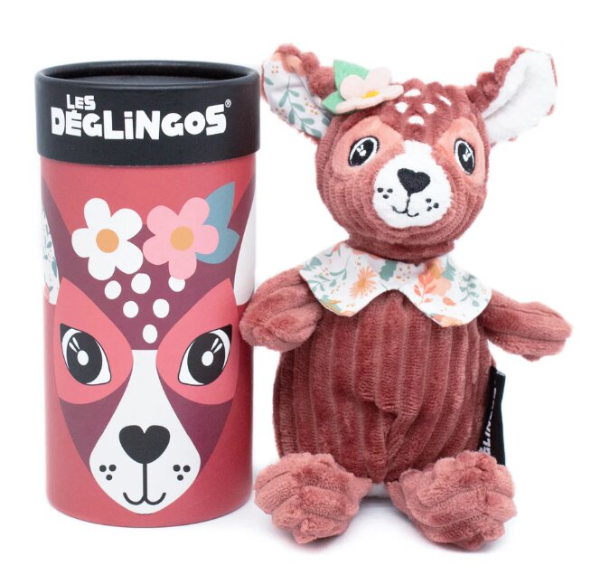 Malá plyšová Srnka značky Les Déglingos zabalená v darčekovej krabičke je ideálny darček k narodeniu dieťatka. Hračka je z mäkkučkého plyšu, vhodná do postieľky na spanie aj bezpečné hranie pre bábätká. Dĺžka 22 cm.