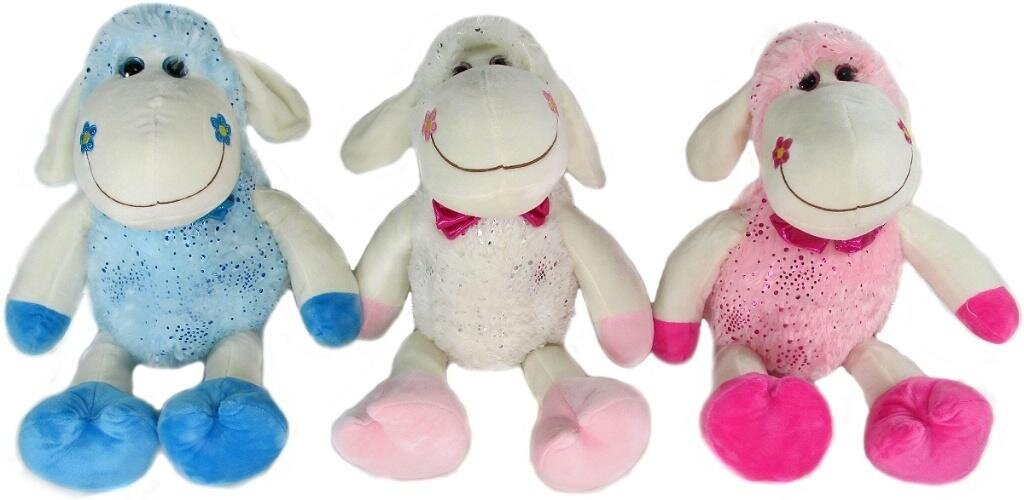 Maskotka o wielkości całkowitej (z nogami) 28cm, siedząc 20cm. Ładne kolory, nietypowy wzór. Do wyboru kolor kremowy, różowy lub niebieski. Cena za sztukę. číst celé