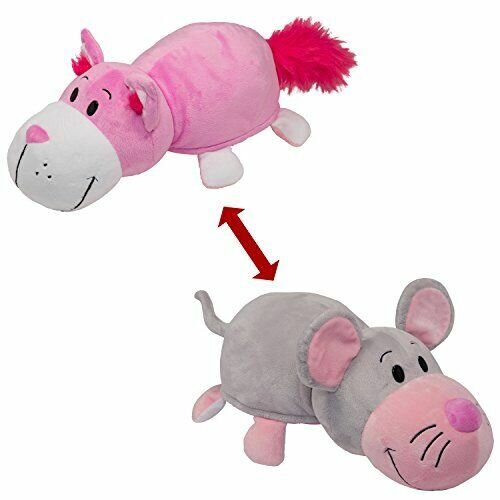 Maskotka zwierzak 2w1 Pluszak może być używany jako maskotka i jako poduszka. Może to być szara mysz jak i różowy kot - wystarczy wywinąć maskotkę. Wielkość maskotki to aż 40 cm.