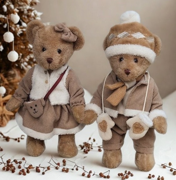 Pár plyšových medvědů v béžovém zimní oblečku je součástí kolekce belgické značky La Galleria číst celé