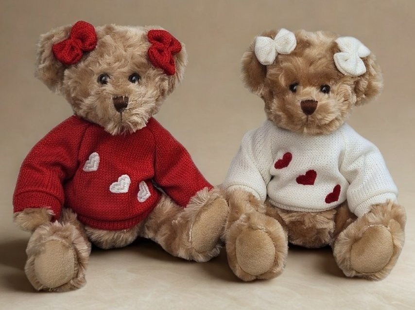 Pár medvídků v bílo červeném svetru se srdíčky 25 cm