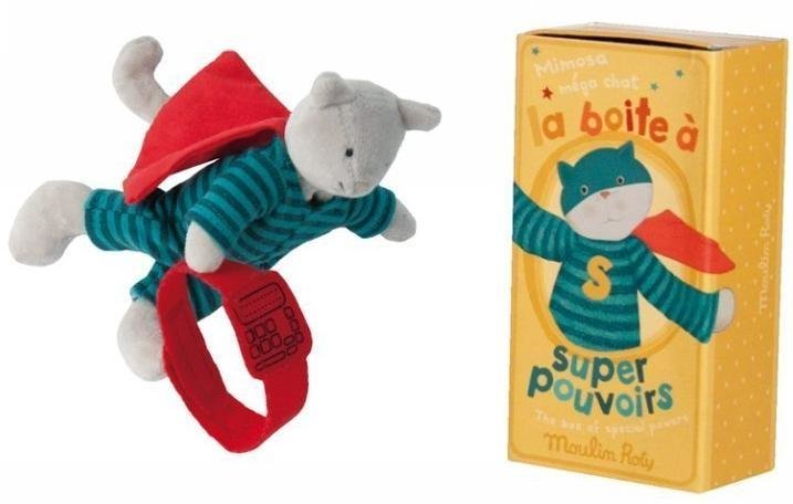 Mały, mięciutki kotek-super bohater, mieszkający w tekturowym pudełku. Może być przyjacielem w czasie, gdy dziecko się boi. Wielkość zabawki 13 cm. Moulin Roty to francuska firma, istniejąca od 1972 roku, która tworzy bajeczne zabawki wzorowane na zabawkach z minionej epok. Kolorowe , delikatne tkaniny o zróżnicowanych fakturach oraz wzory z których wykonywane są zabawki dostosowano do dziecięcych potrzeb, co wpływa na dziecięcą wyobraźnię i dostarcza naszym maluchom całe mnóstwo radości. Kolekcje zabawek to urocze zwierzaki kaczki, króliki czy myszki, ale także pacynki, drewniane samochodziki, klocki, grzechotki i całe mnóstwo zestawów tematycznych do twórczych i rozwijających zdolności dziecka zabaw.