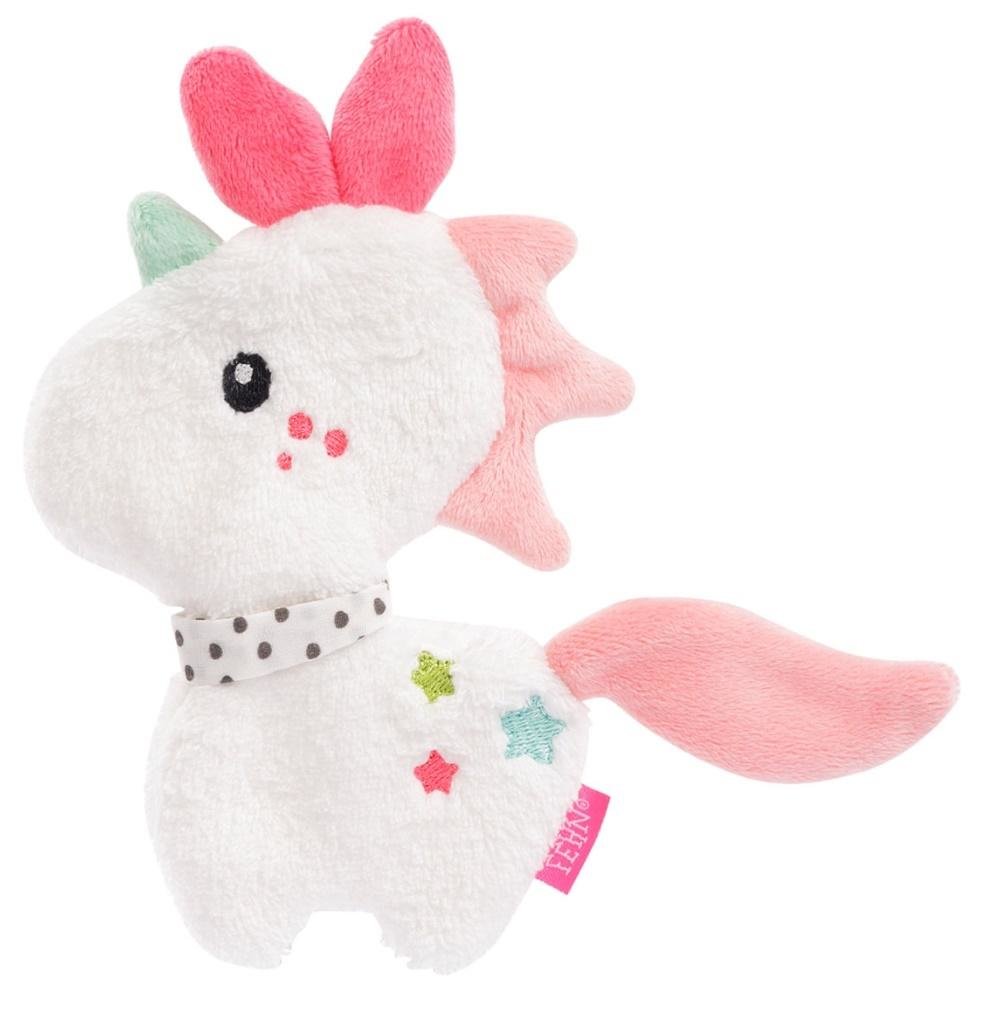 Zabawka sensoryczna, szeleścik, Jednorożec Aiko, z kolekcji: Aiko i Yuki. Zabawka sensoryczna, przedstawiająca Jednorożca o imieniu Aiko, z kolekcji: Aiko i Yuki, będzie doskonałym towarzyszem dla Twojego maleństwa. Super miękka i urocza zabawka o pięknych delikatnych kolorach, dzięki aksamitnym w dotyku materiałom z jakich jest wykonana, z pewnością wzbudzi wielkie zainteresowanie. Umożliwia ciekawskim maluchom badanie świata poprzez oglądanie, naciskanie, głaskanie lub szarpanie wystających elementów o różnej fakturze i kolorze. Przeniesie odrobinę Japonii do pokoiku dziecka. Rozwija i pobudza zmysły. Doskonali zdolności motoryczne. Posiada wewnątrz szeleszczący papier. Aksamitna w dotyku. Do umieszczenia w łóżeczku, wózku, nosidełku itp. Można prać. Wszystkie zabawki niemieckiej marki FEHN są bezpieczne dla dzieci od 0 lat. Wykonane są z najlepszej jakości materiałów. Spełniają normy EN71, CE, badane w instytutach Stiftung Warentest lub kotest.