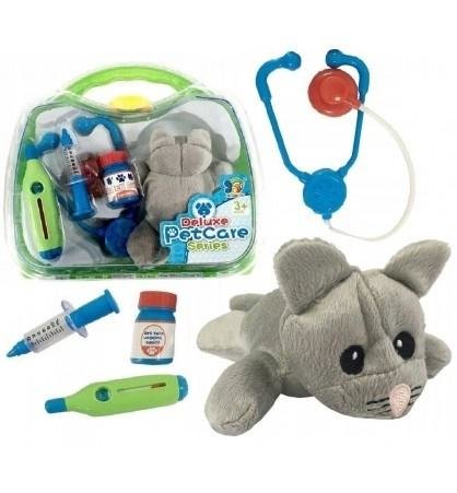 W ZESTAWIE: PLUSZOWY KOTEK, STRZYKAWKA, TERMOMETR, STETOSKOP, PUDEŁECZKO LEKARTSW, WYM. OPK: 29 X 26 X 8 CM., 3+ číst celé