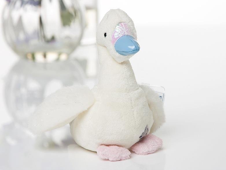 Jednym z nich jest elegancki i puszysty Łabędź. Jego piórka na skrzydłach lekko połyskują, a groszek wypełniający maskotkę wesoło brzęczy w środku.