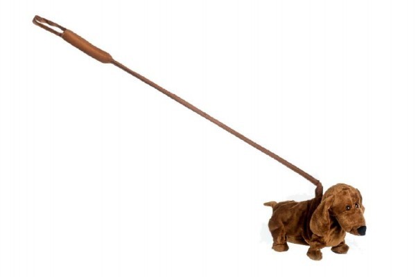 Jezevčík hrající chodící plyš 30cm na baterie na tyčce