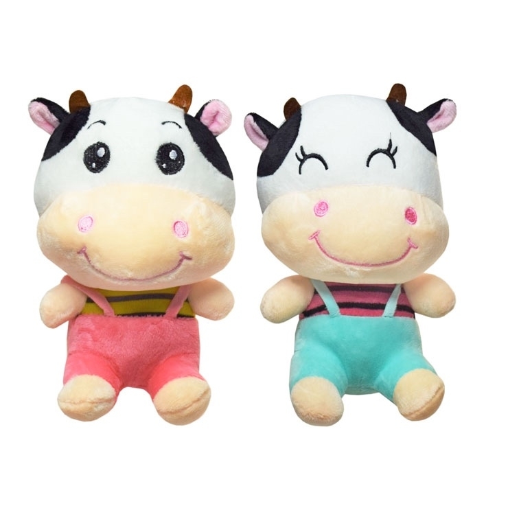 Plyšová 19cm veselá sedící kravička Štístko. Možnost výběru - v růžových nebo v zelených kalhotách. číst celé