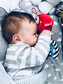 Do uszycia pierwszych przytulanek Twojego malucha używamy bezpiecznych tkanin o różnej strukturze. Dzięki temu dziecko poznaje świat i stymuluje zmysł dotyku. Nie zapominamy także o prawidłowym rozwoju zmysłu wzroku. Na samym początku nasze pociechy nie dostrzegają kolorów i nie odróżniają kształtów, dlatego powinniśmy wybierać zabawki, które przede wszystkim są bodźcami wzrokowymi. Noworodek nie dostrzega kolorowych wzorków, uśmiechniętych zwierzaków. Proste zestawienie biało-czarnych kolorów to jedyne co noworodek potrafi zauważyć. Czerwona Mini Ośmiornica ma także wszyty dzwoneczek, którego delikatny dźwięk dostarczy maluszkowi bodźców słuchowych i zachęci go do dalszej zabawy. Dzięki przywieszce kostka może podróżować z Twoim dzieckiem przypięta do fotelika samochodowego, wózka lub torby. Zabawka jest miękka, ma puszyste wypełnienie i nie stanowi żadnego zagrożenia dla Twojego dziecka.