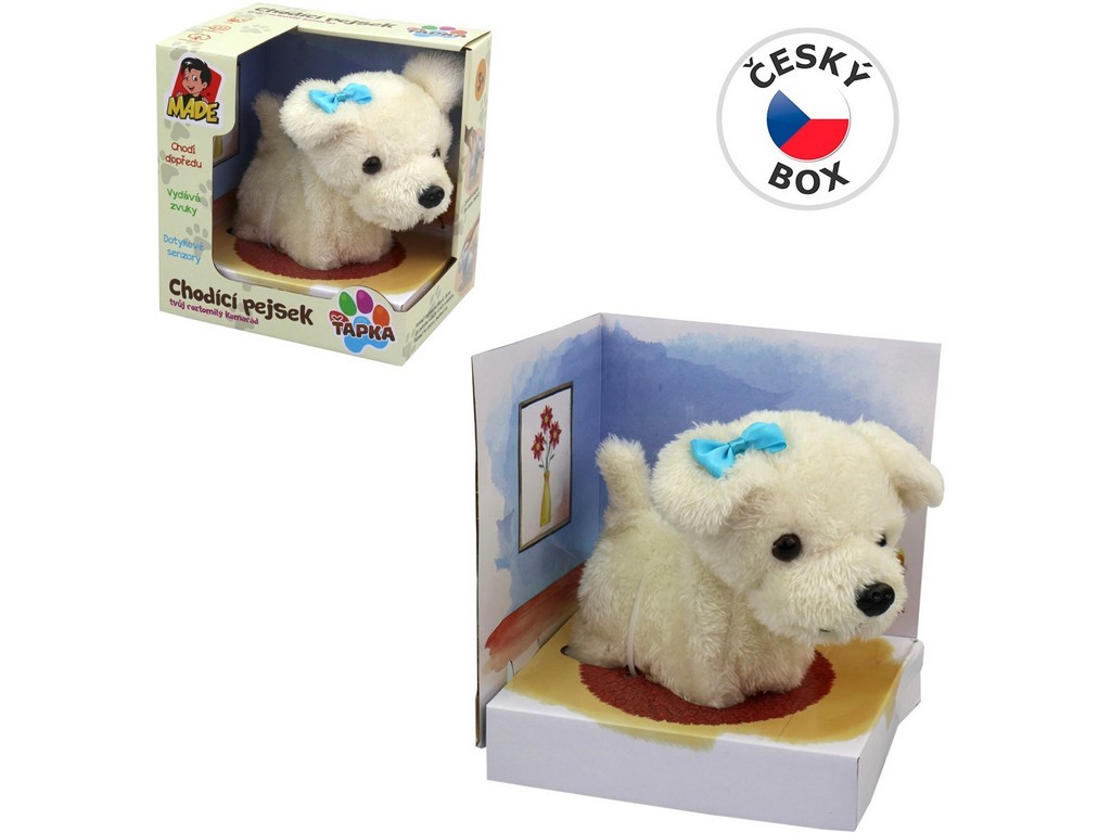 Pejsek chodící, 15 cmHračka je určena pro děti 3+.Rozměr hračky je 15 x 9 x 15 cm.Materiál hračky je plyš.Balení hračky je display box.Produkt je určený pro kohokoliv.Ke zprovoznění produktu jsou potřeba 2 AA baterie.Baterie nejsou součástí balení.