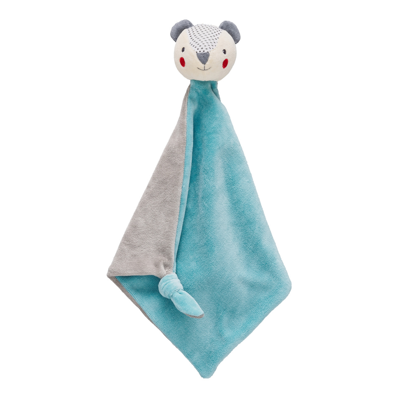 Extra měkká, plyšová dečka s hlavou usměvavého medvídka. Perfektní na poobědový odpočinek. Kontrastní vzory a barvy medvídka podněcují u dětí rozvoj senzoriky, uzlíček na rohu dečky zase mohou držet nebo kousat. Hlavní vlastnosti: Perfektní dárek pro novorozence Vyrobeno z 100% organické měkké bavlny Nabarveno ekologickými barvami na rostlinné bázi