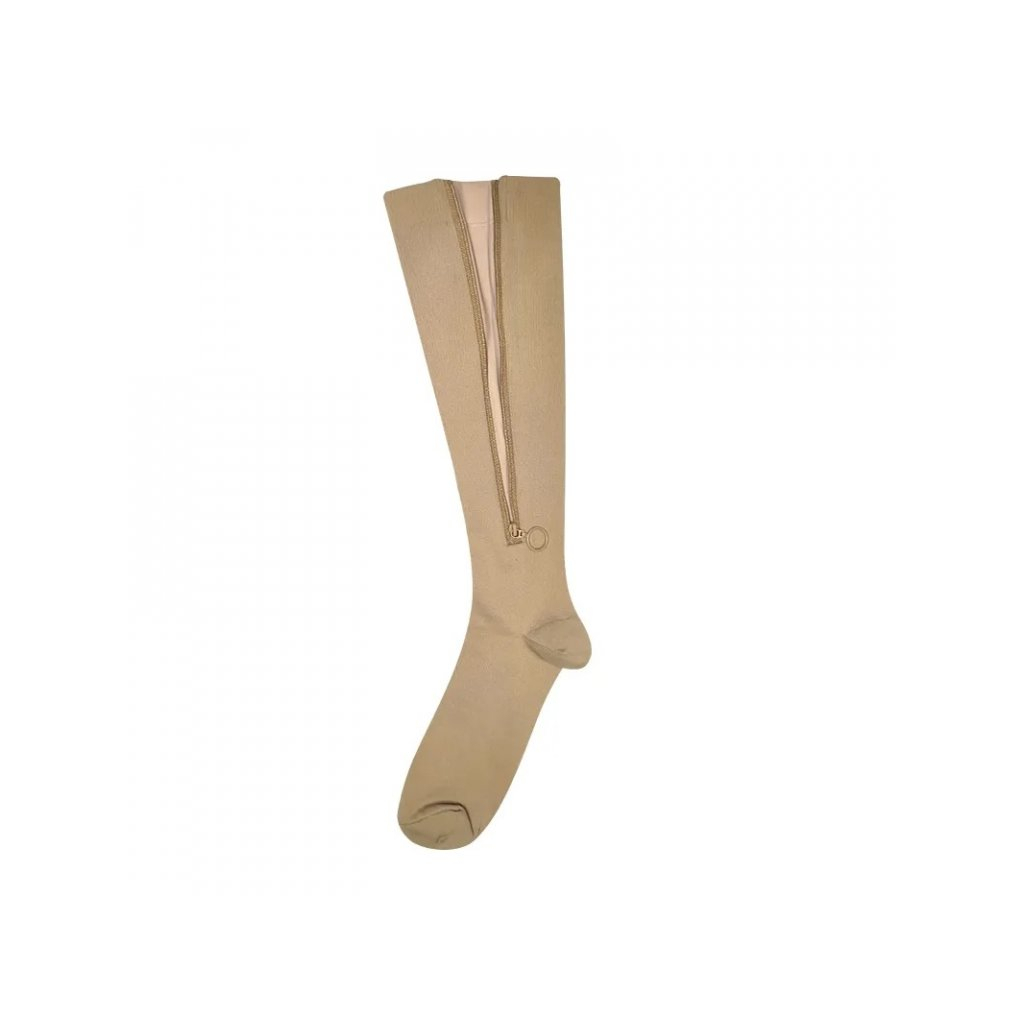 Kompresní podkolenky se zipem ZBCH zavřená špice - béžové, L/XL