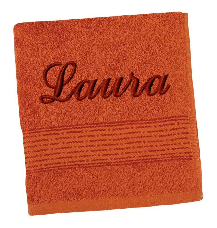 Froté ručník proužek s výšivkou jména - Terrakota - 50x100 cm