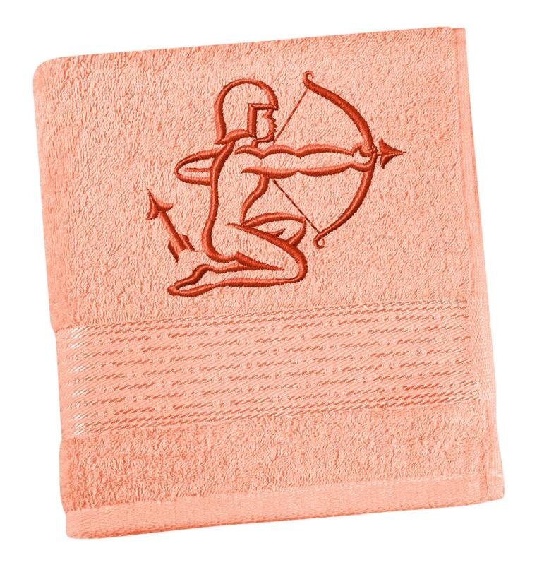 Froté ručník proužek s výšivkou znamení zvěrokruhu - Lososová - 50x100 cm