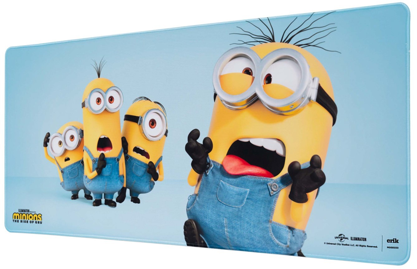 Oficiální podložka z katalogu produktů s logem, fotografiemi a grafikou populárních animovaných postaviček jménem Mimoni.