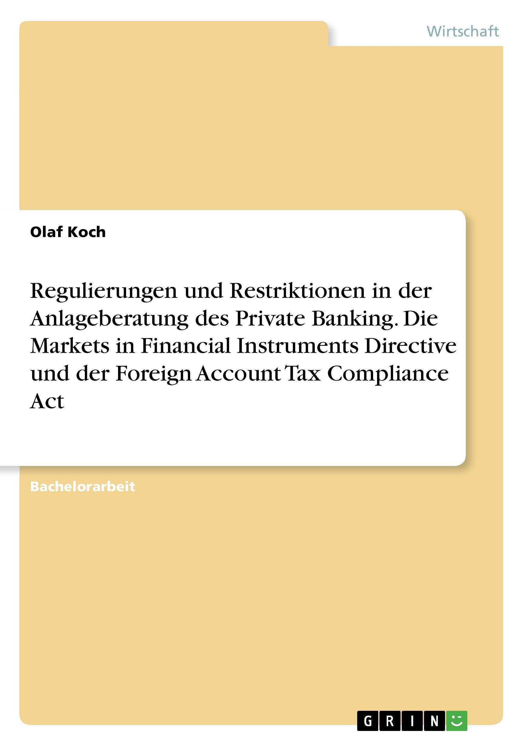 Regulierungen und Restriktionen in der Anlageberatung des Private Banking. Die Markets in Financial Instruments Directive und de (německy)