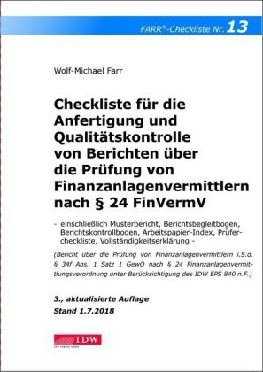 Checkliste 13 für die Anfertigung und Qualitätskontrolle von Berichten über die Prüfung von Finanzanlagenvermittlern nach 24 Fin (německy)