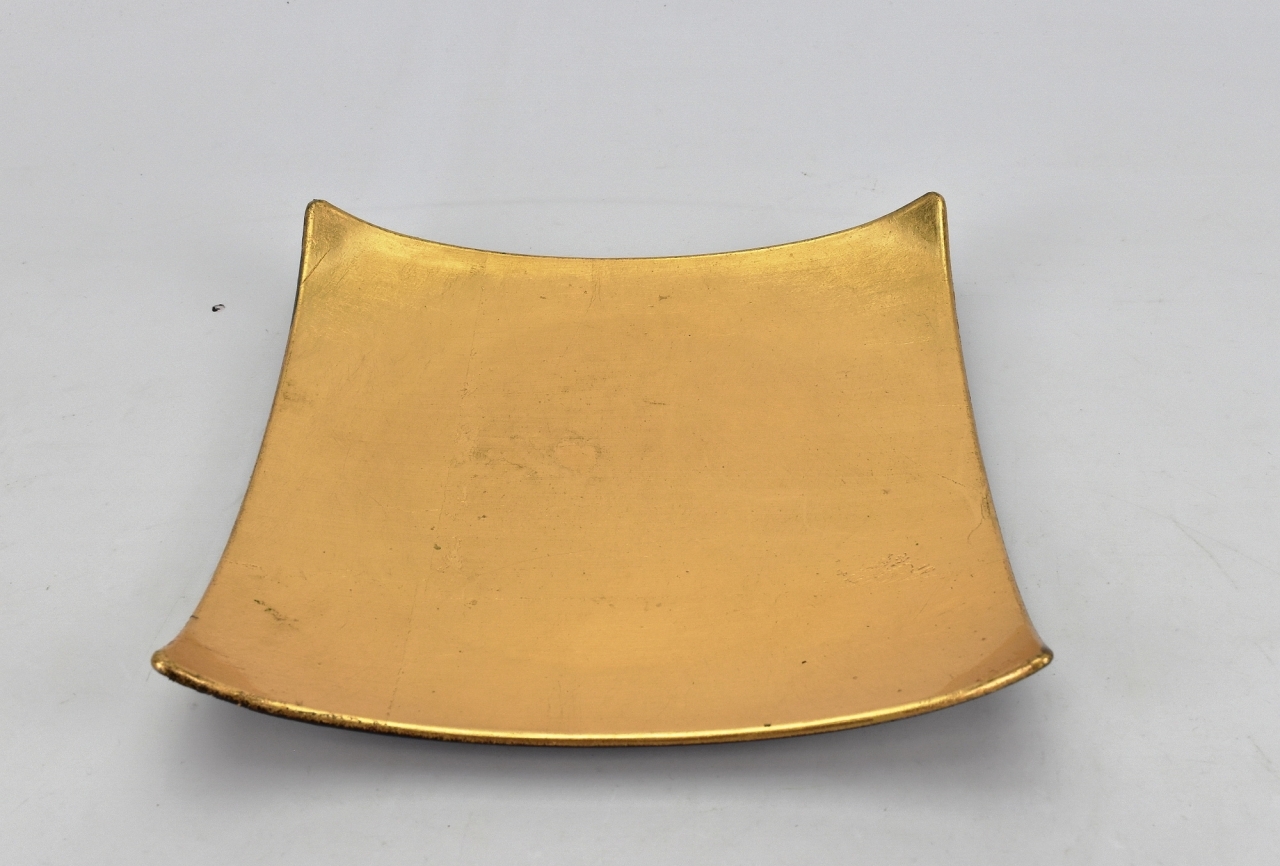 Plastový ozdobný tácek ve zlaté barvě. Může sloužit k dalšímu dekorování. II. jakost z důvodu poškrábání viz foto.