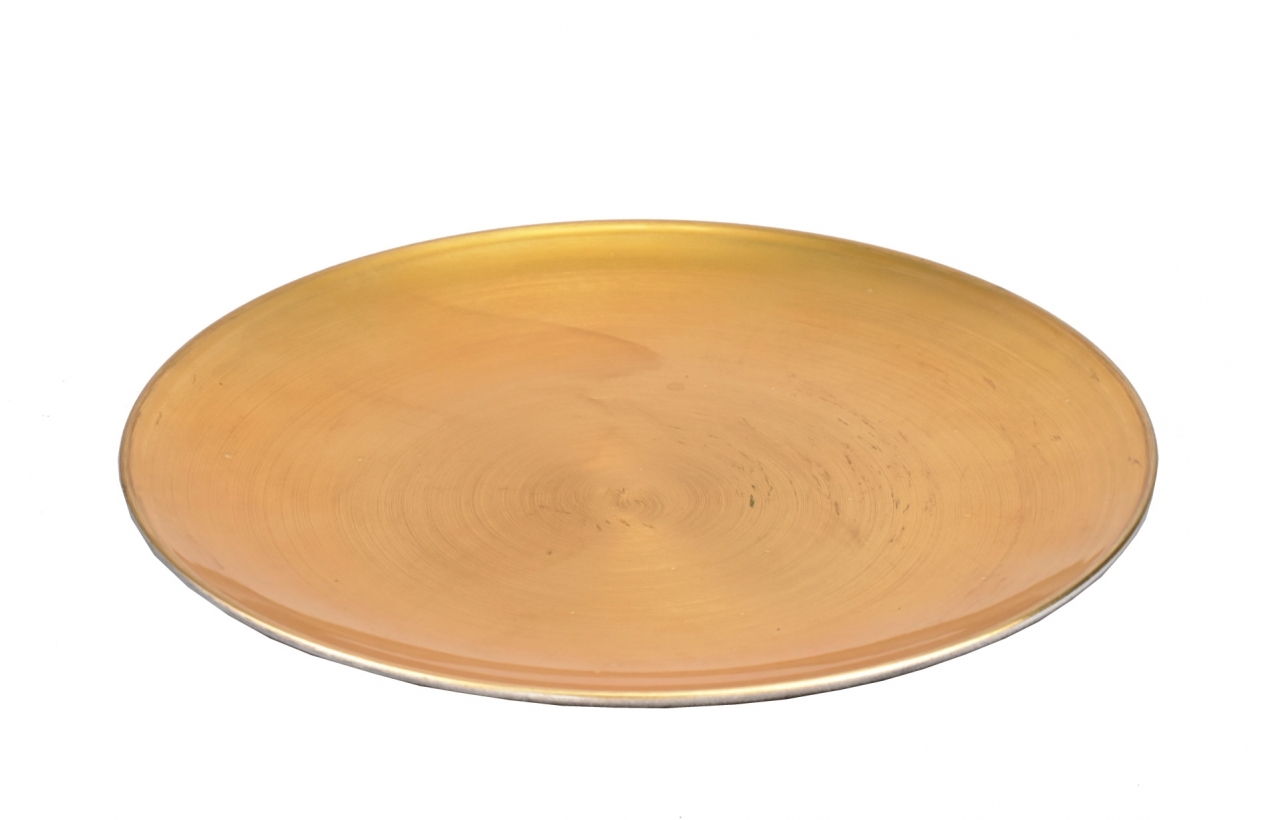 Plastový kulatý talíř ve zlaté barvě dodá vašemu interiéru elegantní nádech.