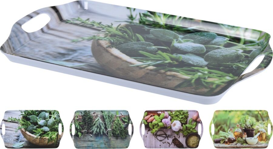 Praktický a stylový podnos s motivem bylinek - ideální pomocník pro servírování i každodenní použití v kuchyni i při stolování. Užijte si pohodlí a pohodu při podávání kávy, čaje nebo pochutin.