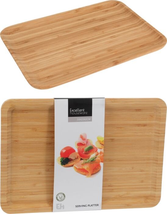 Objevte kouzlo servírování s tímto stylovým a odolným podnosem o rozměrech 33x23x2 cm. Díky svému přírodnímu vzhledu z bambusu se hodí jak do moderní, tak tradiční kuchyně a jídelny.