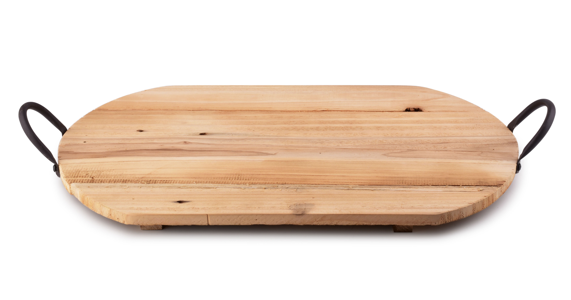 Taca z uchwytami z serii LOGAN marki COOKINI wykonana z drewna. Taca do eksponowania i serwowania. Nowocześnie i pięknie zaprojektowana pasuje do każdego aneksu i otoczenia w kuchni.Charakteryzuje się postarzanym wykończeniem. Asortyment wykonany z drewna posiada surowe, mocno postarzane wykończenie, mogą pojawić się pęknięcia,przetarcia. Wszystkie te cechy są zamierzone, nadają produktom marki wyjątkowy, unikatowy charakter. Taca-deska nadaje się do mycia ręcznego i przecierania wilgotną ściereczką. Wykonana z drewna sosnowego.długość z uchwytami 54cm 47,5x29xh3cm waga:614g karton zbiorczy 10szt