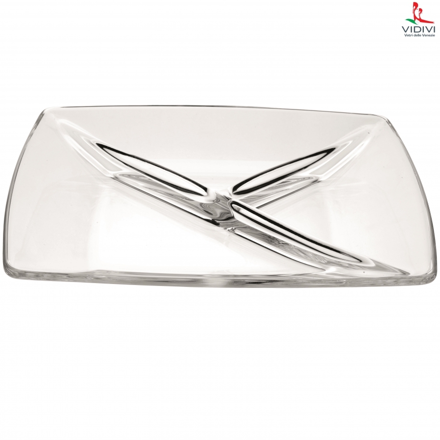 Skleněný třídílný servírovací podnos v jedinečném designu s geometrickým efektem. Vyznačuje se transparentností skla, čistotou a perfektními liniemi. Při každé příležitosti bude ozdobou vašeho stolu. Je vyrobený z kvalitního luxusního italského skla(sklo z Benátek) s vysokým stupněm transparentnosti, lesku a pevnosti. Propracované výrobky se budou vyjímat na každém stole. Vidivi výrobky vynikají jednoduchostí, čistotou tvarů, pevností a robustností. Rozměr - 23 x 23 cm, hmotnost - 0,797 kg, vhodné do mikrovlnné trouby a myčky