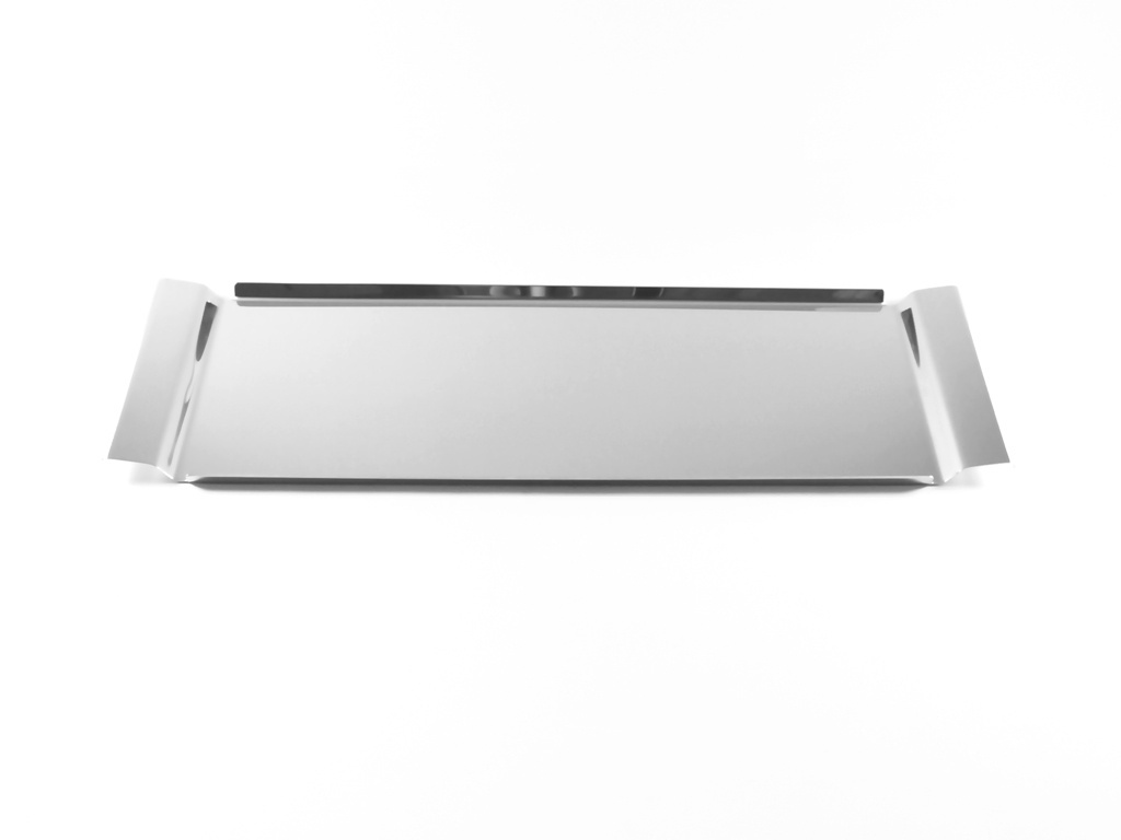 Elegantní hranatý podnos plní praktickou servírovací funkci, na prostřeném stole však může být zároveň designovým doplňkem. Podnos je vyroben z vysoce kvalitního nerezového materiálu 18/10. Leštěný do vysokého lesku a vhodný do myčky nádobí. Rozměry - 45x15 cm, síla materiálu 1 mm.