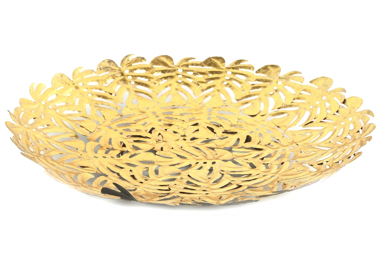 Kovová lísa z mosterových listů. Mísa je určená k dekoraci.