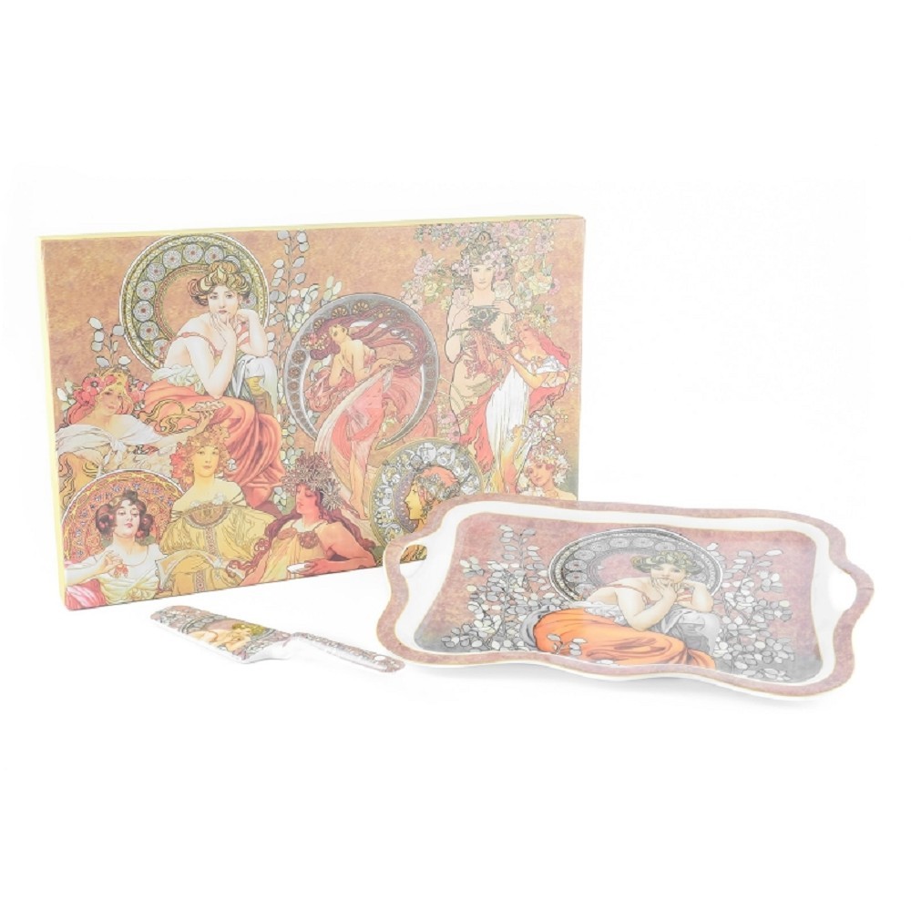 HOME ELEMENTS Talíř s náčiním na dort 35 cm, Mucha tmavý