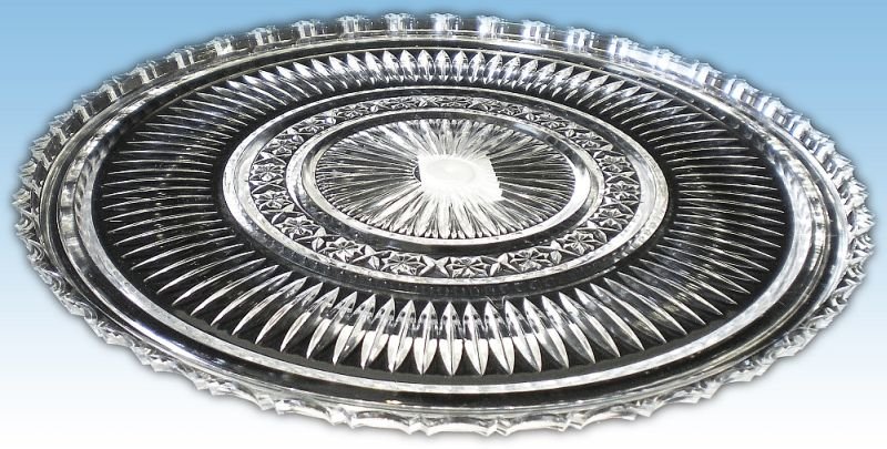 Podnos kulatý v plastovém provedení, imitace broušeného skla, průměr 28 cm. číst celé