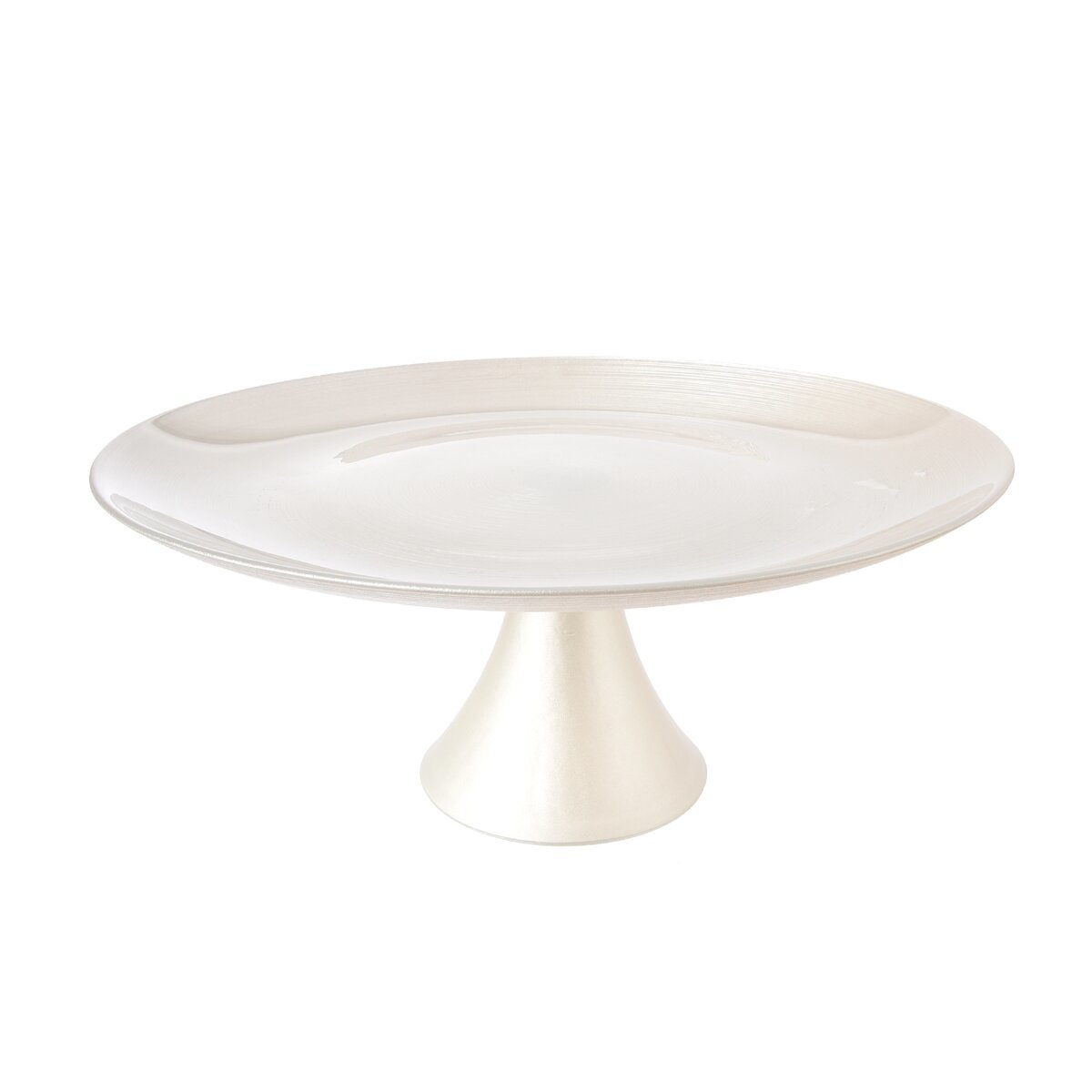 Stojan na nožce je skvělý pro servírování bábovky, koláče, dortu, zákusků, muffinů, ovoce… Zdokonalí servírování pohoštění vašim hostům. Materiál: sklo. Struktura linek a perleťový nástřik na spodní straně. Rozměry: pr. 28 cm, v. 12,3 cm. Není vhodný do myčky.