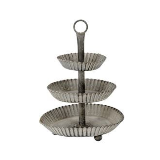 Dekorační 3patrový stojan.Rozměry : průměr 17 cm, výška 23 cm.Barva : šedá.Materiál : kov. číst celé