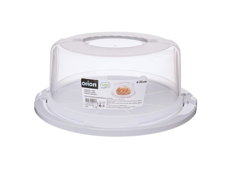 Podnos na dort s praktickým poklopem umožní bezpečné přenášení dortů, zákusků, chlebíčků a jiných pochutin. Poklop se připevňuje k tácu dvěma klipy. Po odklopení můžete občerstvení servírovat. Kryt slouží nejen k bezpečnému přenášení, ale také k uchování, k ochraně před hmyzem v letních dnech. Je transparentní, takže máte dobrý přehled o obsahu. Materiál: plast. Rozměry: vnitřní pr. 30 cm, 38x33,5x15 cm.