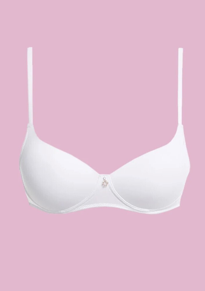 Wygodny biustonosz dla nastolatek z miłej i przyjemnej dla ciała mikrofibry- miseczki modelowane termicznie (nie odznaczają się pod ubraniem)- delikatnie usztywnione gąbeczką push up- bez fiszbin- ramiączka z regulacją- trzystopniowe zapięcie na jedną haftkęSkład: 89% poliamid, 11% elastan
