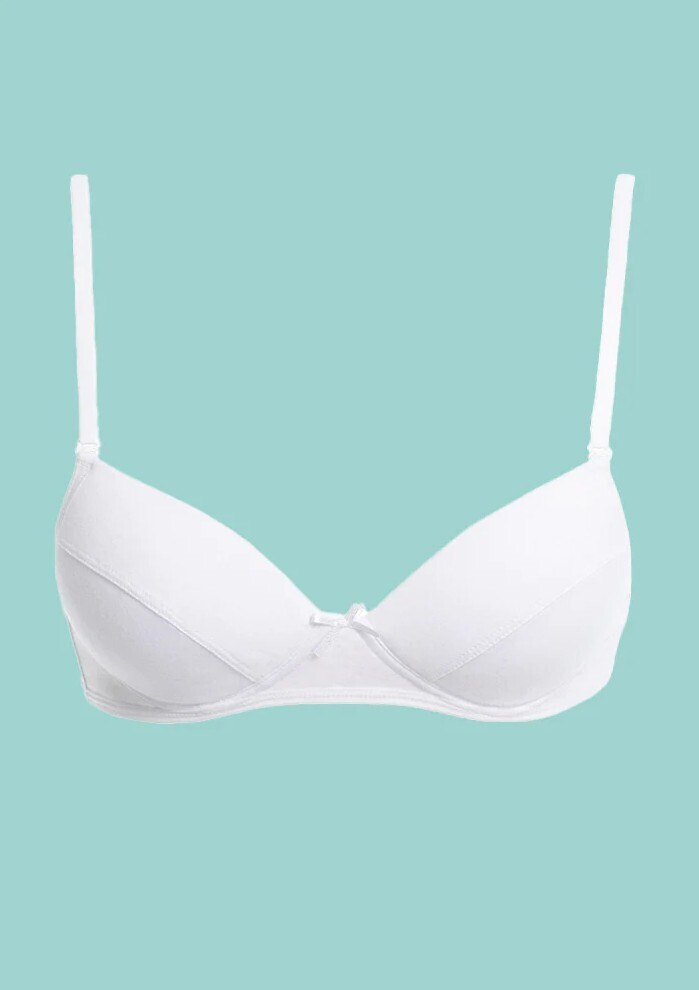 Biustonosz dla nastolatek- z gładkiej bawełny- miseczki delikatnie usztywniane, bez fiszbin- ramiączka z regulacją- zapinane w obwodzie na jedną haftkę číst celé