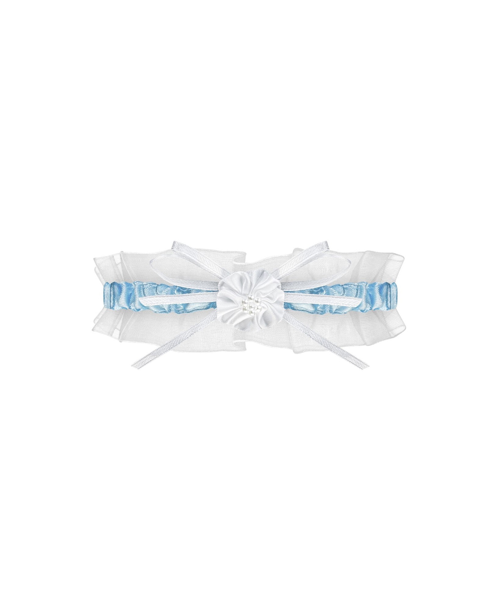 Elegancka podwiązka- z delikatnego szyfonu i satynowej tasiemki- zdobiona kokardką z kwiatuszkiem