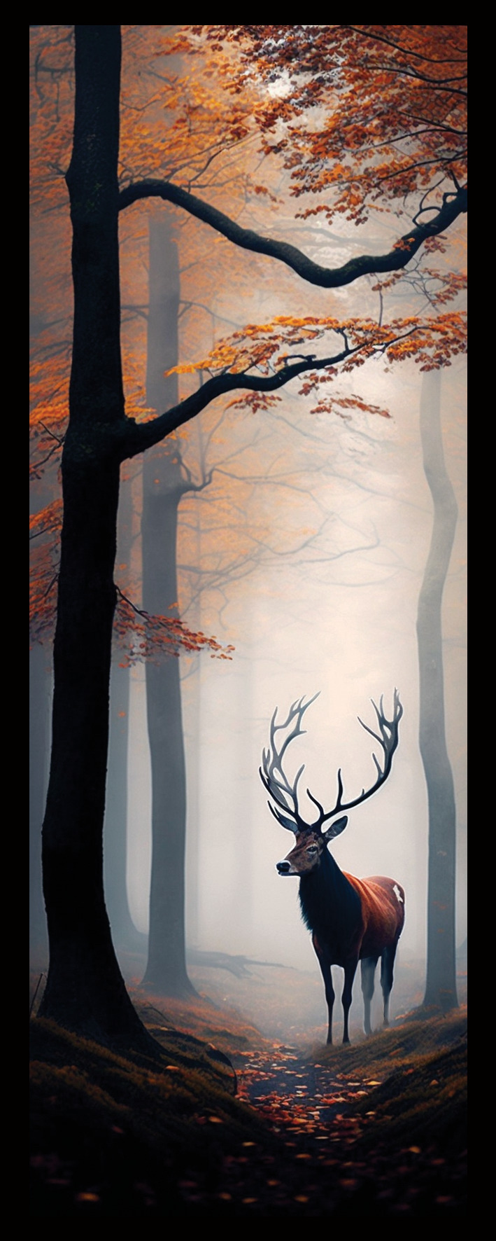 Ponořte se do atmosféry mlžného lesa, kde hrdé kmeny stromů a žluté listí vytvářejí jedinečnou podzimní scenérii. Tato sběratelská záložka zachycuje krásu a vznešenost lesa i jeho obyvatel. Jelen symbolizuje krále přírody a jeho silueta mezi poloprůsvitnou mlhou vás okouzlí na první pohled. Podzimní les zde ožívá v jemných odstínech oranžové a žluté, které vytvoří nejen krásný doplněk do vaší knihy, ale také ozdobu vaší knihovničky.