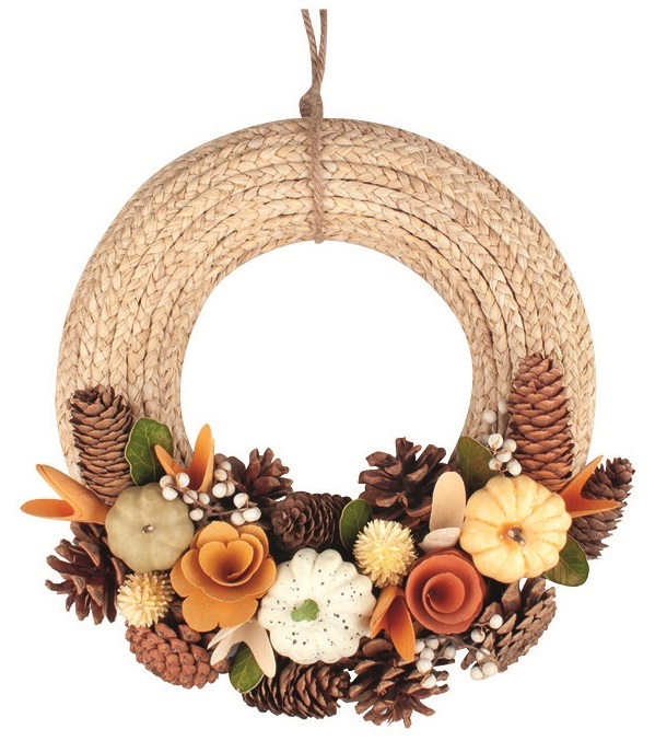 Podzimní věnec ze sisálových vláken na zavěšení ø 27 cm x 8 cm