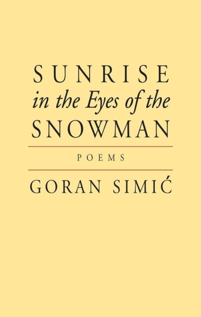 Sunrise in the Eyes of the Snowman, the latest collection by Bosnian expat Goran Simic, is as much a departure as it is a continuance. In this book, we find the world-renowned poet visiting familiar themes in fresh ways.