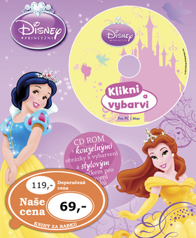 Nádherné a velice inovativní omalovánky s obrázky Disney princezen. Na čtřyřiceti osmi stranách papírových omalovánek můžete vymalovávat princezny jako Sněhurka, Bella, Popelka, Růženka a další oblíbenkyně. Dále je k omalovánkám přloženo CD s programem omalovánek pro počítač, kde může vaše dítě vymalovávat dalších 64 obrázků. Tyto omalovánky rozvíjí nejen kreativitu a jemnou motoriku ale i práci s počítačem. Zabaví a hravou formou vzdělávají vaše děti.