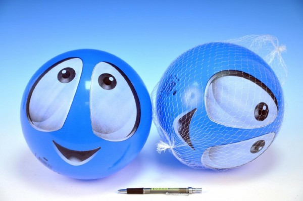Míč smajlík modrý 22cm v síťce