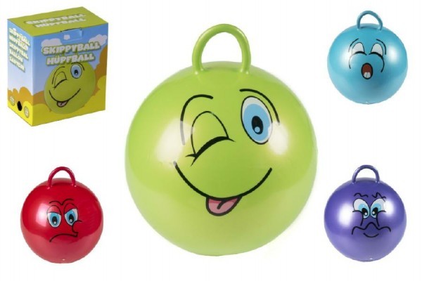Skákací míč smajlík s úchytem 45cm nosnost 60kg asst 6 druhů v krabici