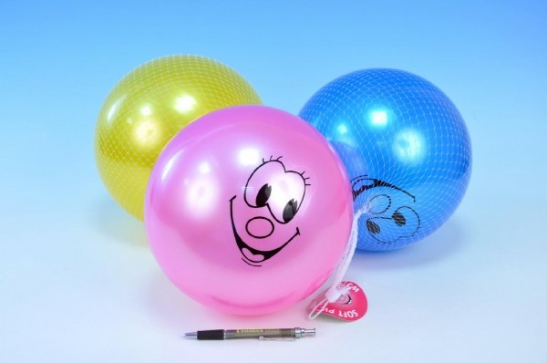 Míč smajlík 21cm asst 3 barvy v síťce od 0 měsíců