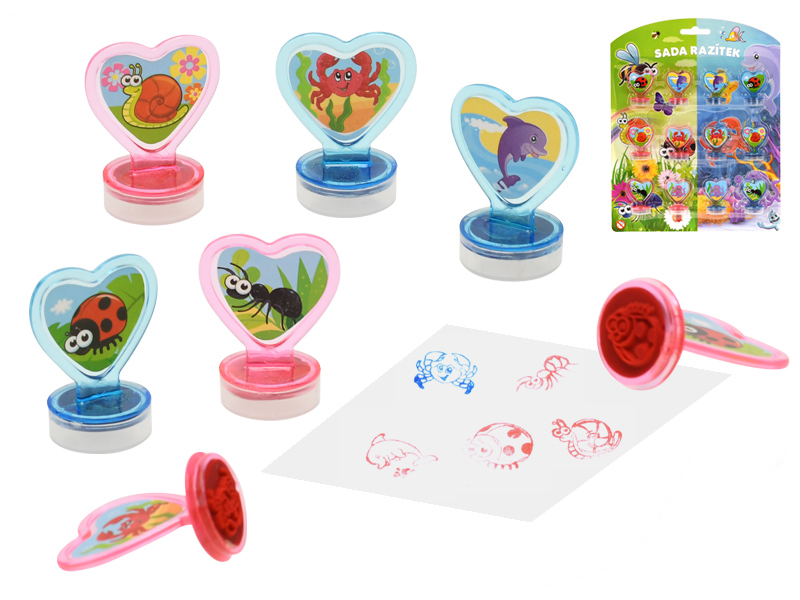 Obyčejná plastová razítka. Škoda jen, že obsahuje pouze 6 vzorů po dvou barvách.